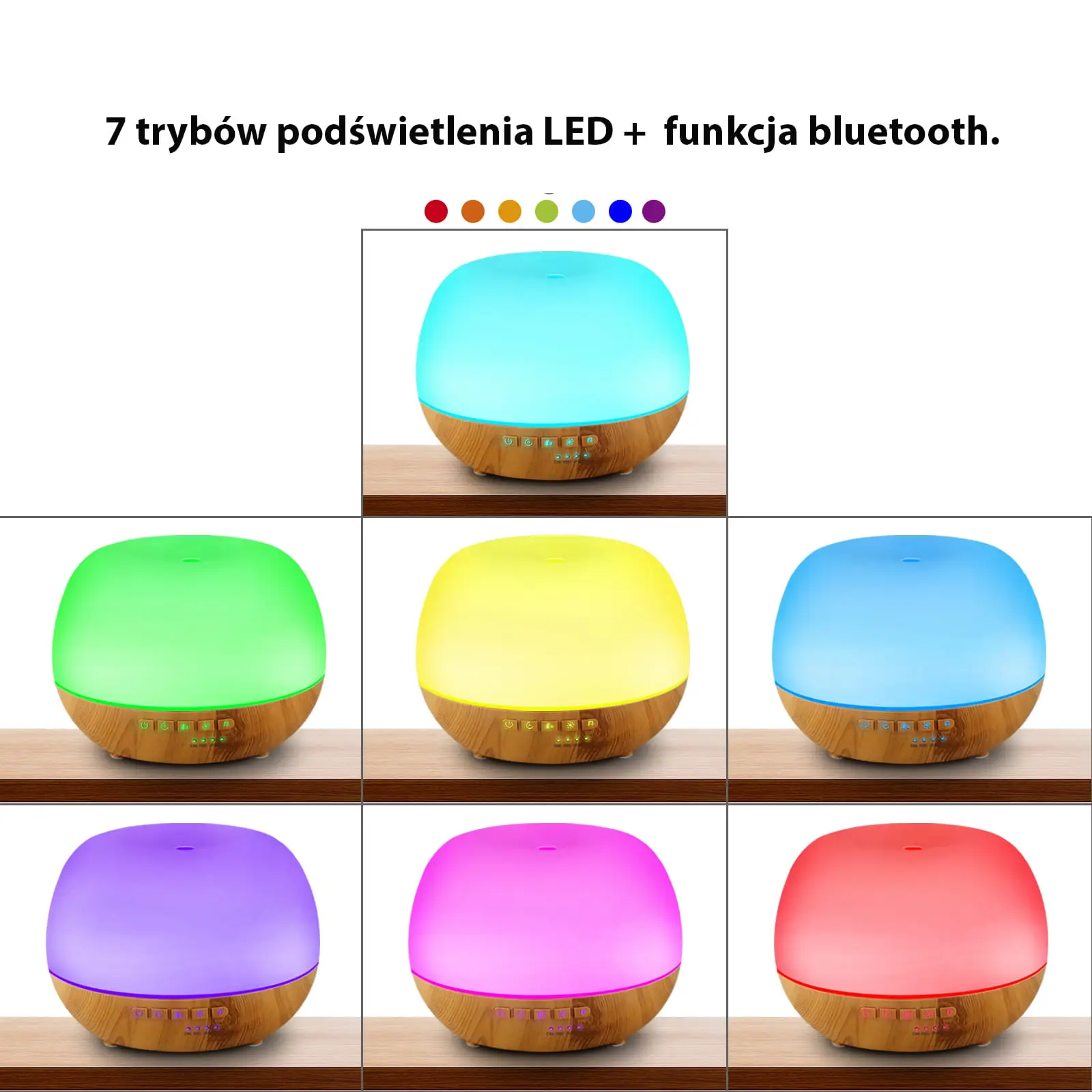 - Funkcja lampki nocnej - 7 trybów kolorów podświetlenia led + tryb nocny + tryb ciepłego światła.