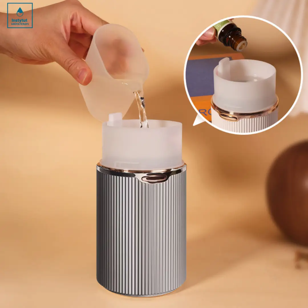 ➡️ Tworzywo: Pojemnik na wodę zgodnie z dyrektywą do olejków tworzywa PP + ABS - nie wchodzi w reakcje z olejkami cytrusowymi.