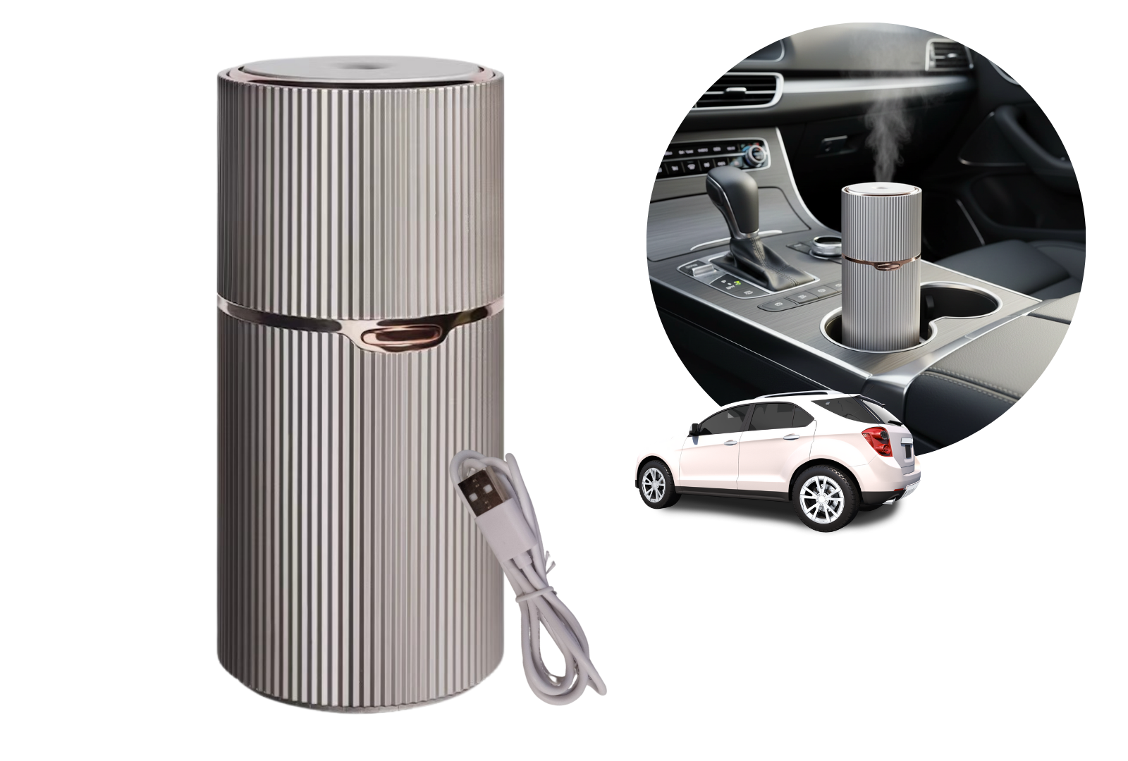 Ten model, ze względu na kształt kubka, zmieści się w samochodowym uchwycie/miejscu na napoje ! Dzięki niemu zapewnisz sobie intensywną aromaterapię podczas jazdy lub nawilżenie powietrza podczas letnich wycieczek. Jego kompaktowy kształt sprawia, że może być Twoim nierozłącznym towarzyszem. Wygodne ładowanie za pomocą USB sprawia, że nie musisz zabierać ze sobą dodatkowych kabli i zasilaczy, po prostu użyj ładowarki od smartfonu lub tabletu.