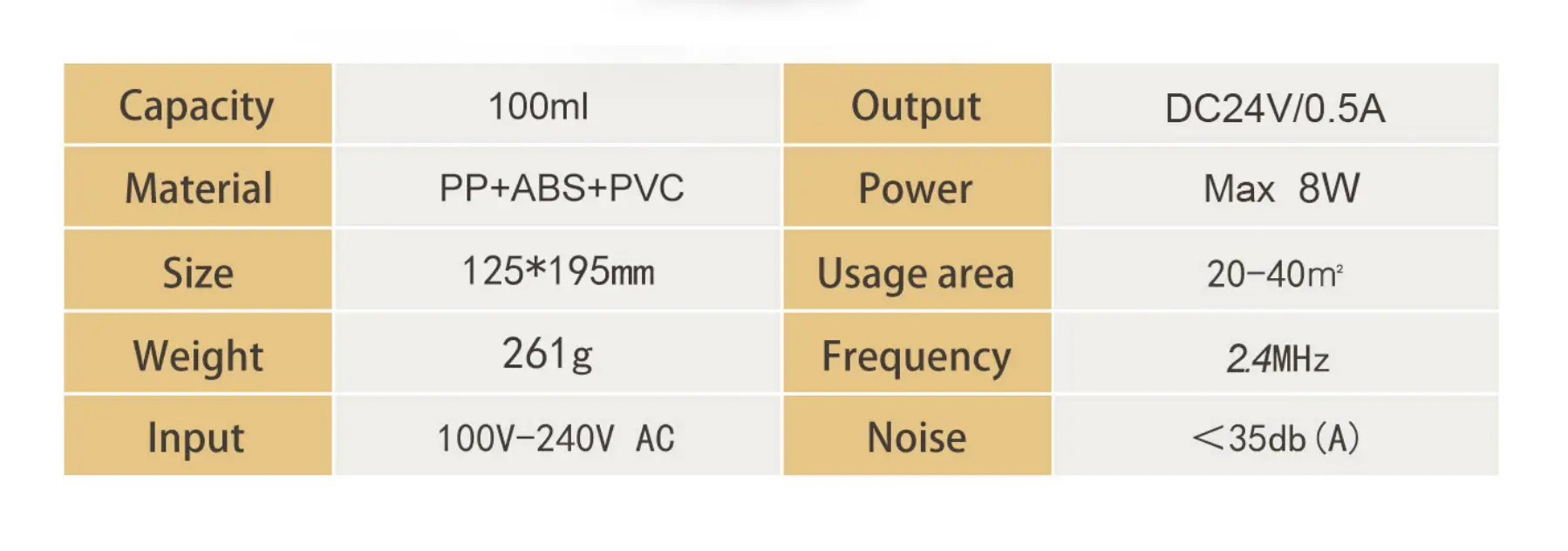 Pomimo kompaktowych wymiarów posiada 130 ml zbiornik na wodę, aby zapewnić ciągłą prace do 180 minut lub w trybie przerywany cieszyć się zapachem do 5 godzin.