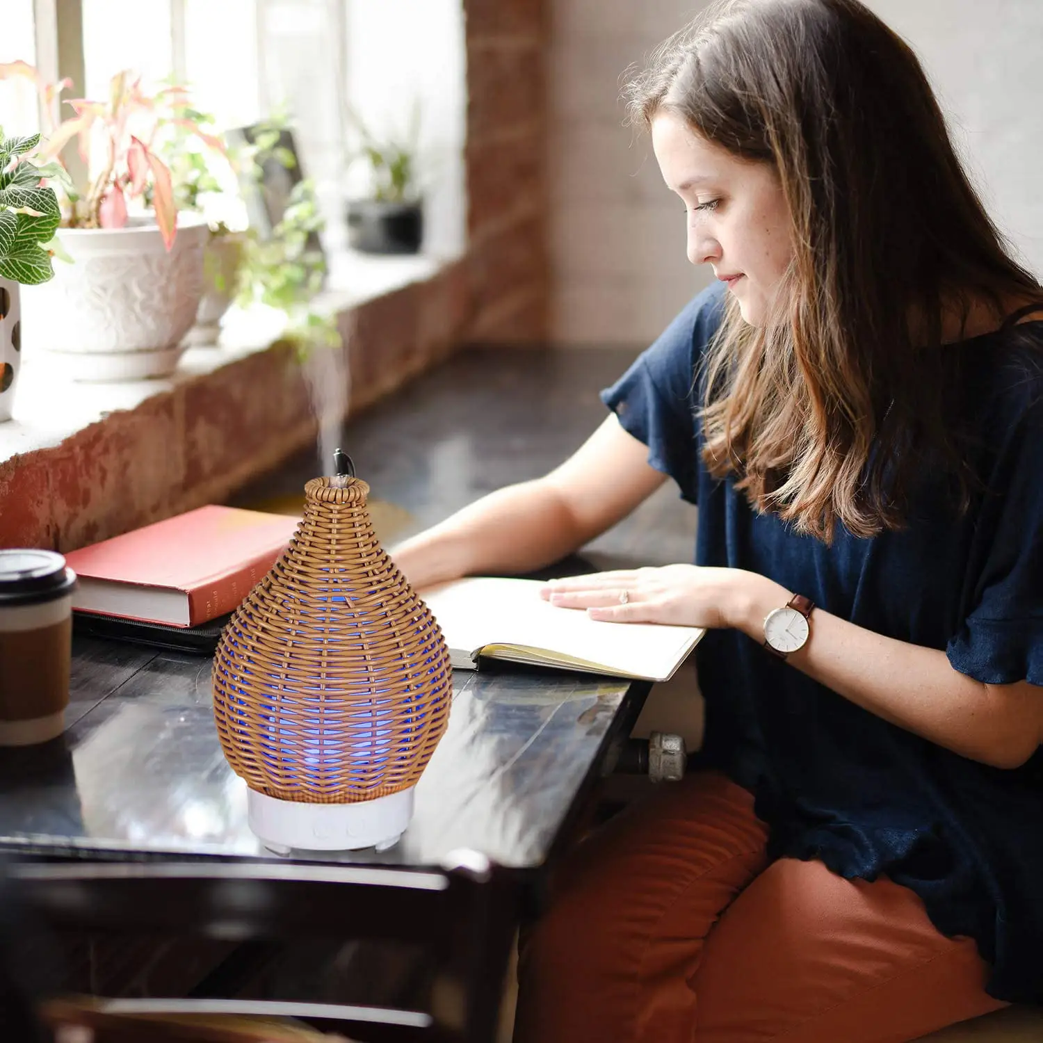 - Dyfuzor olejku eterycznego otacza Cię kojącą mgłą, która łagodzi stres i napięcie, wspomaga leczenie chorób układu oddechowego, astmy. Pomaga także w oddychaniu kiedy śpisz w pomieszczeniu klimatyzowanym, lub podczas sezonu grzewczego .