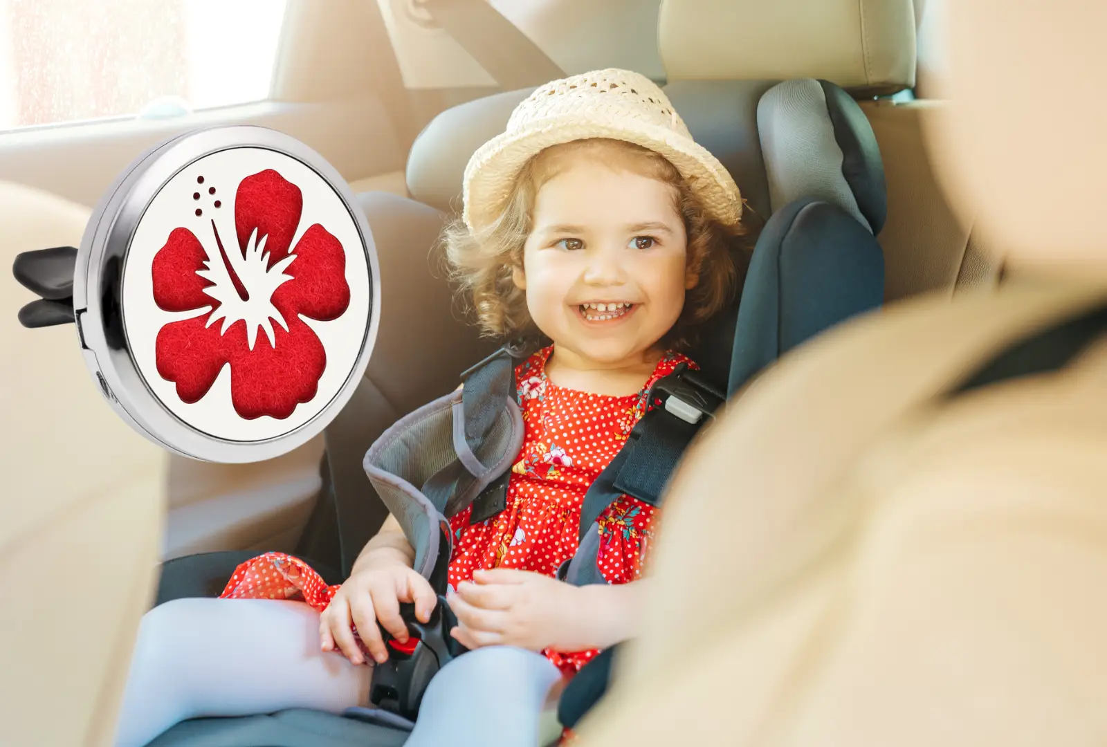 Dyfuzor aromaterapeutyczny do samochodu - model HIBISKUS, bezpieczny i zdrowy do olejków eterycznych