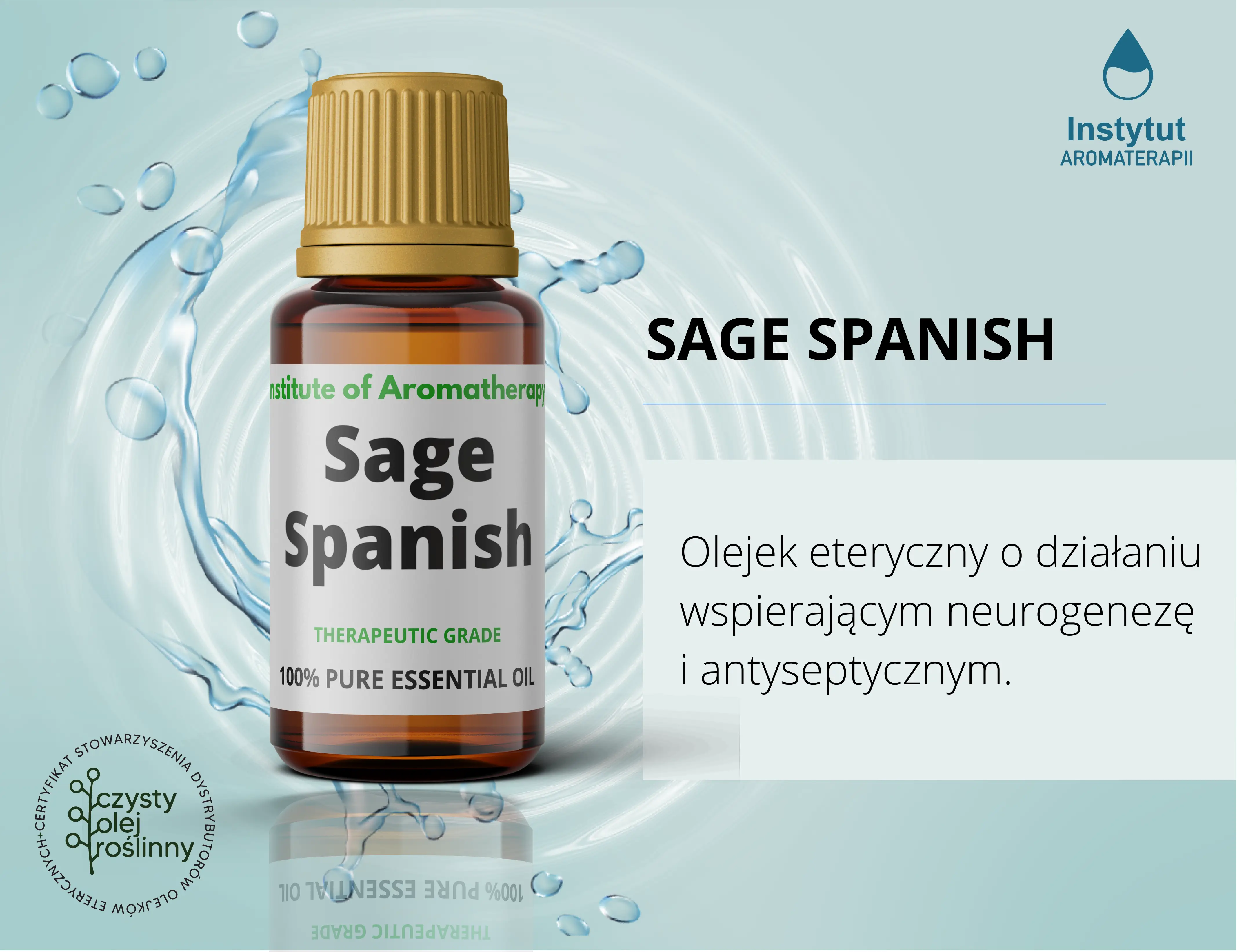 - 100 % TERAPEUTYCZNEJ KLASY olejek eteryczny SZAŁWIOWII HISZPAŃSKIEJ ORGANICZNY