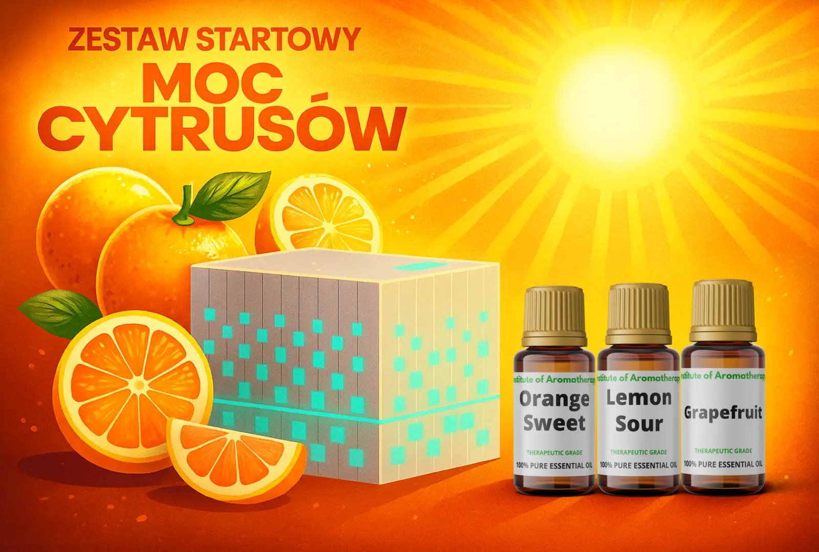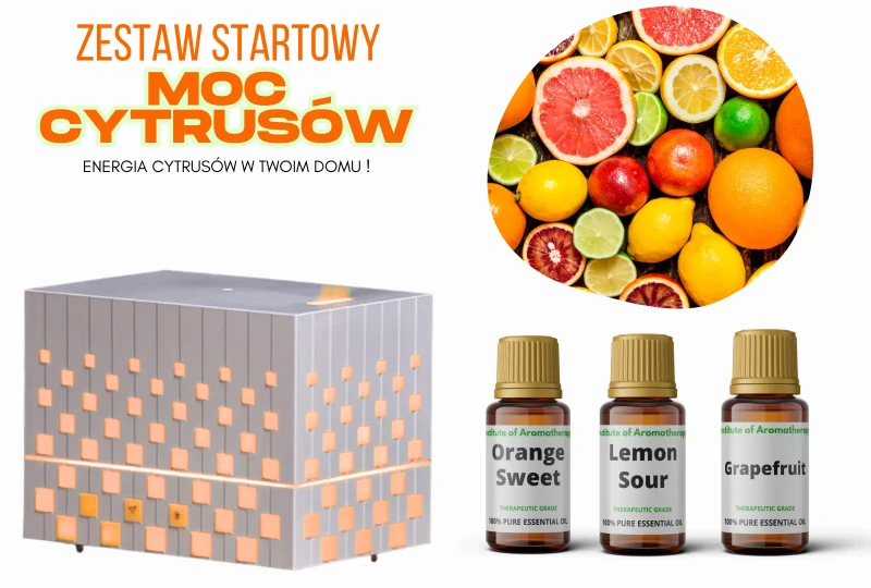 Zestaw Startowy MOC CYTRUSÓW ! - 3 cytrusowe olejki eteryczne + dyfuzor Aroma CUBE