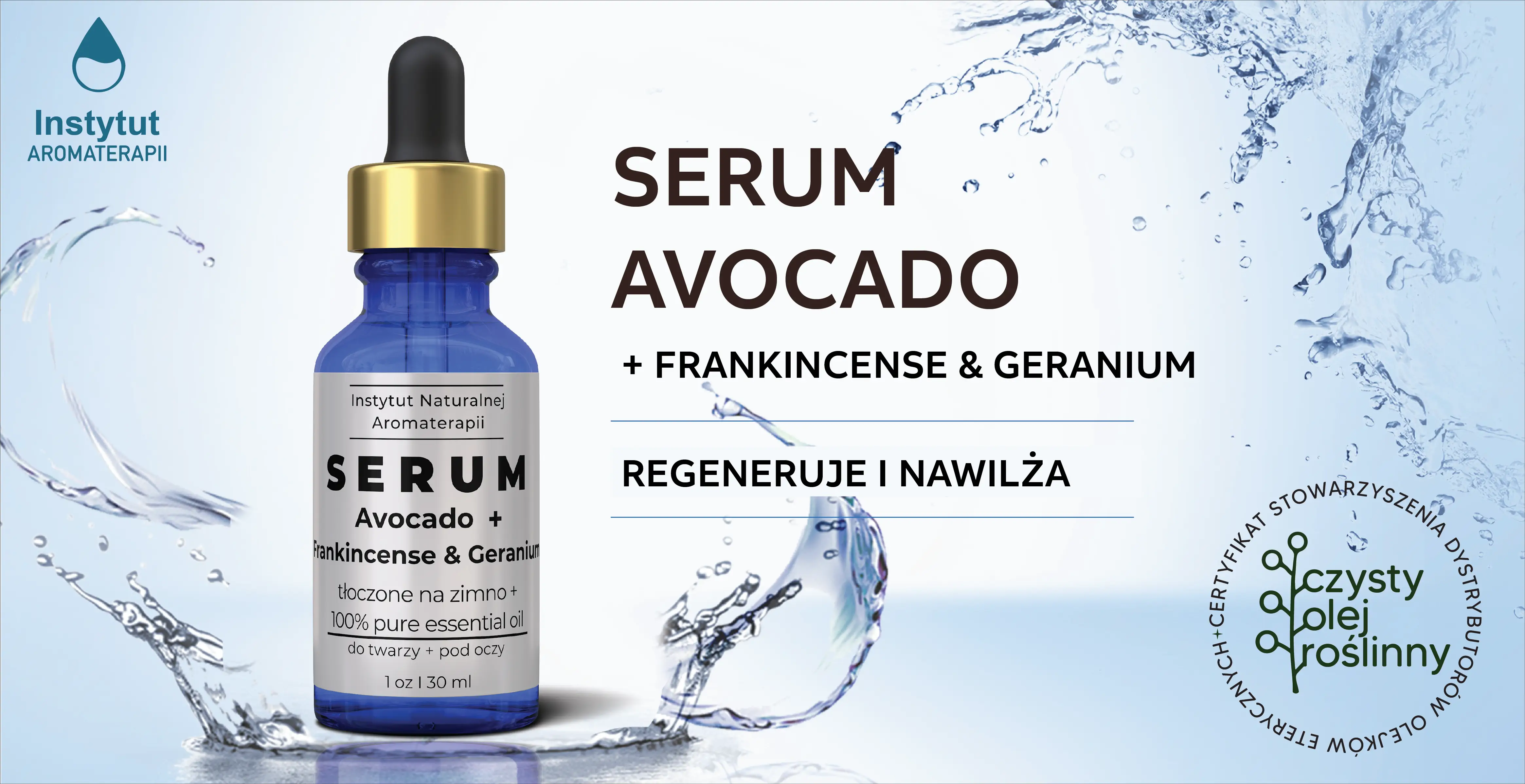 Opracowane przez Instytut Naturalnej Aromaterapii z Warszawy genialne serum olejkowe z avocado oparte o niezwykle regenerujące działanie najczystszego olejku eterycznego kadzidłowca (Frankincense) i Geranium Rose.